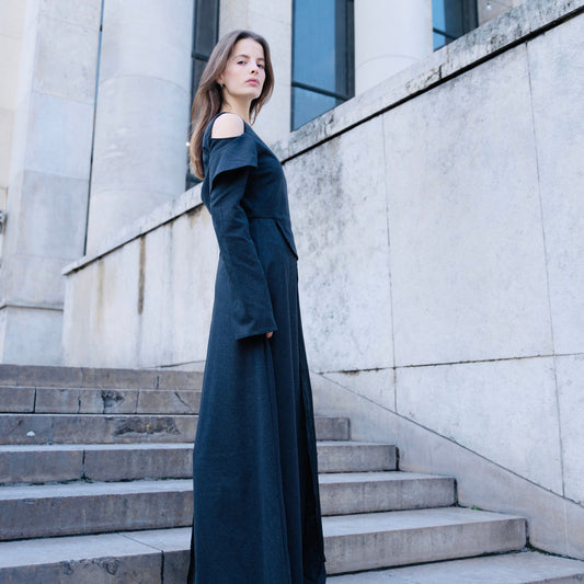 WOOL DRESS WITH SILK CHIFFON SCARF